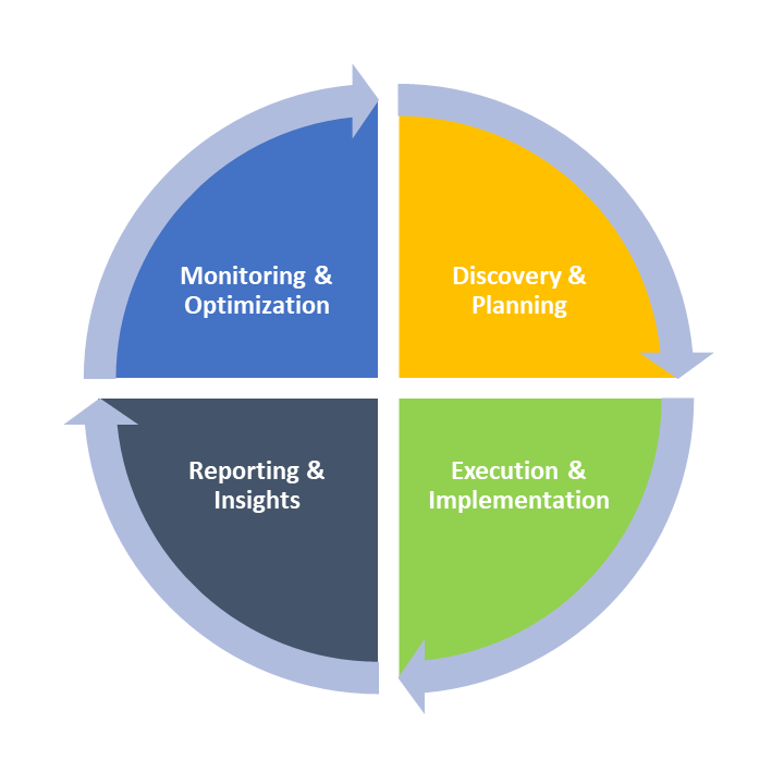 Once the plan is in place, this phase focuses on putting the strategies and tactics into action. It involves carrying out the tasks and activities that were planned in the discovery phase